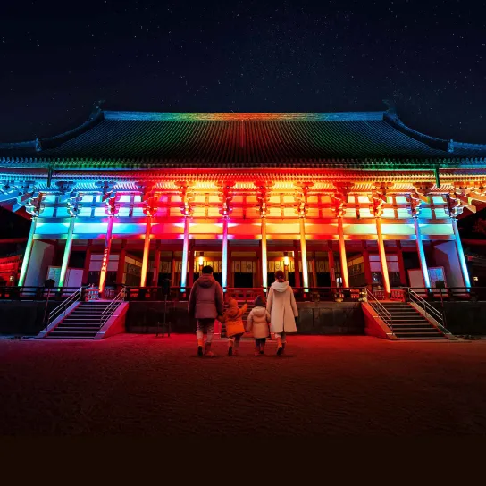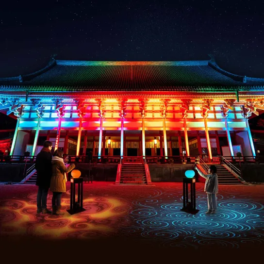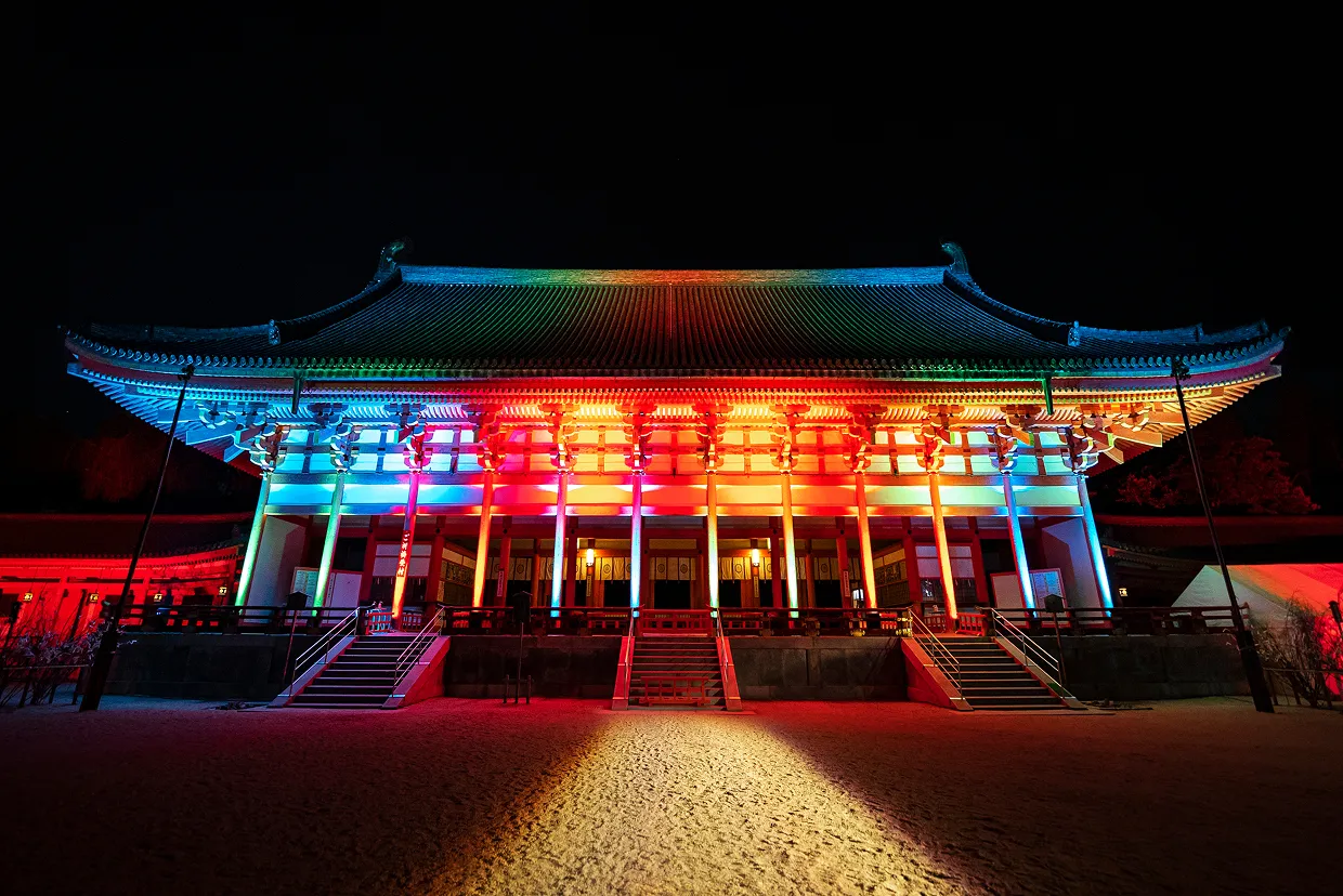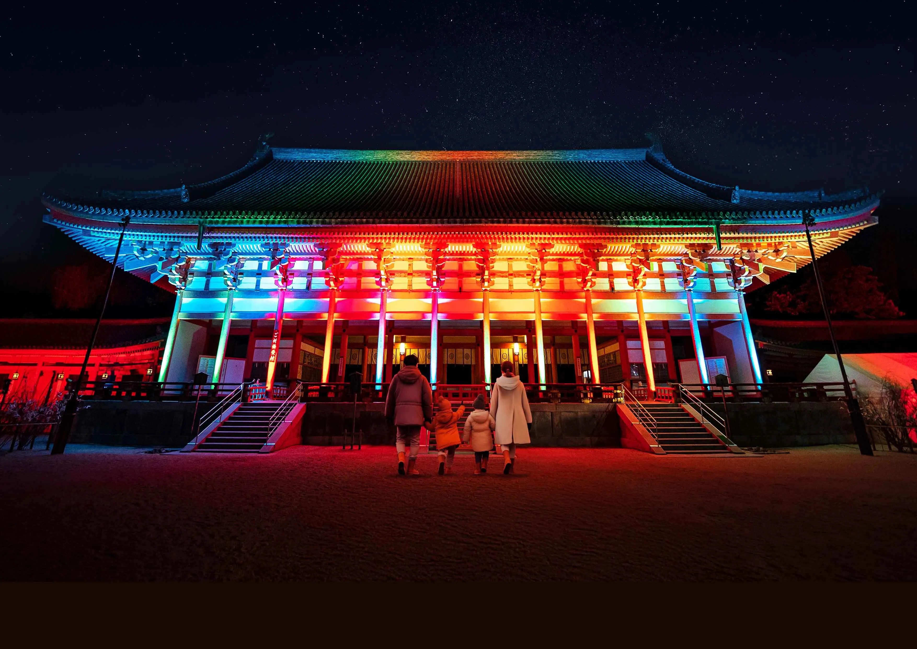 ※大極殿の塗替・耐震工事は、予定より早く会期初日(2025年12月19日(金))までに完了し、会期中は通常どおりご参拝いただけます。なお、早期特典として、2025年12月22日(月)まで、NAKEDディスタンス提灯®をひとグループにつき1個、無償貸出いたします。