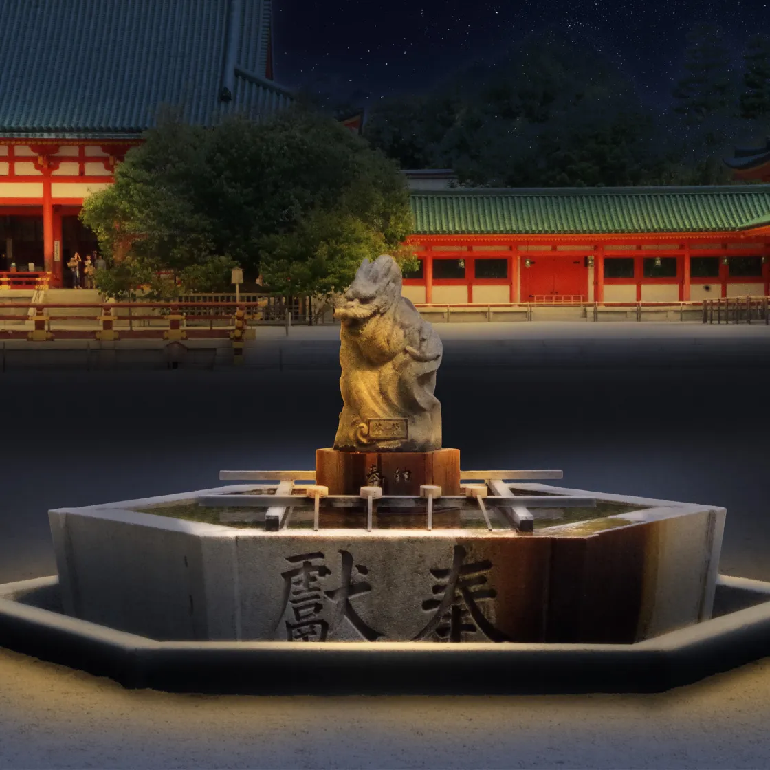 平安神宮は、平安遷都1100年を記念して1895年に創建された、京都の歴史と文化を象徴する神社です。平安京をお開きになられた桓武天皇と、明治維新の礎を築かれた孝明天皇をお祀りし、その社殿は平安京の朝堂院を約8分の5の規模で再現しています。平安京は、京都の地を守護すると伝えられる四神—東の青龍、西の白虎、南の朱雀、北の玄武—の思想が深く関わっており、桓武天皇は、四神相応の地として京都に都をお開きになられました。その思想は、平安神宮とも深い関わりがあり、京都全体の安寧と繁栄を祈る聖域としての意味を持っています。